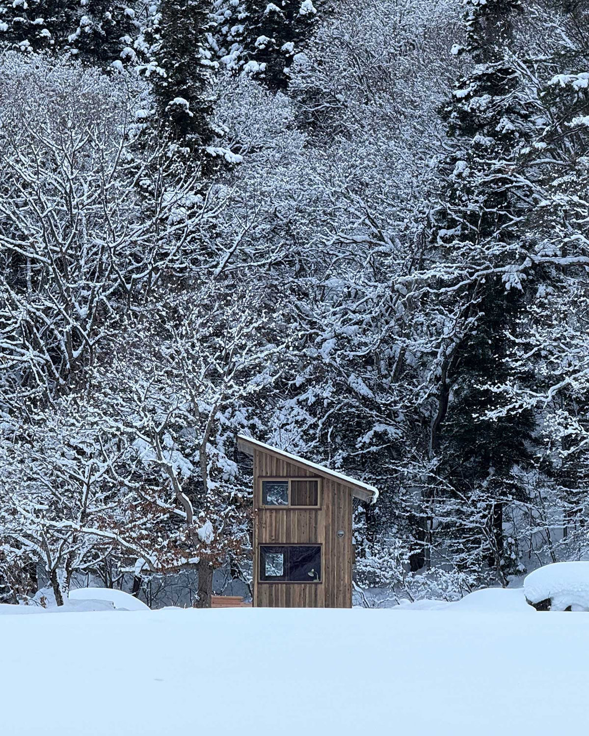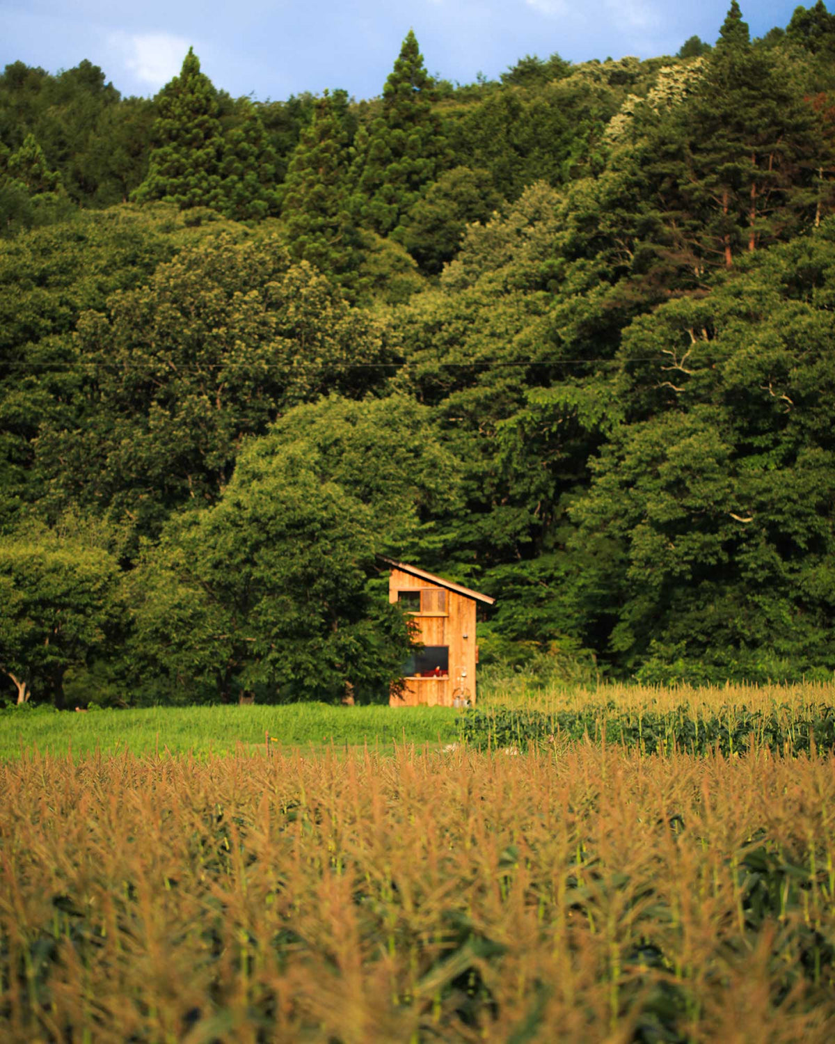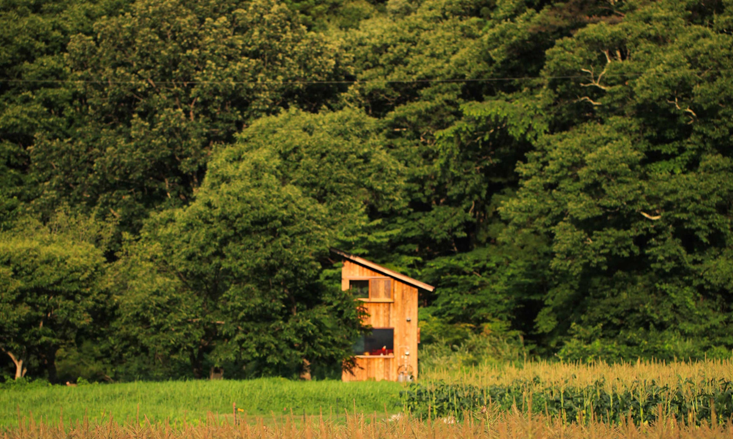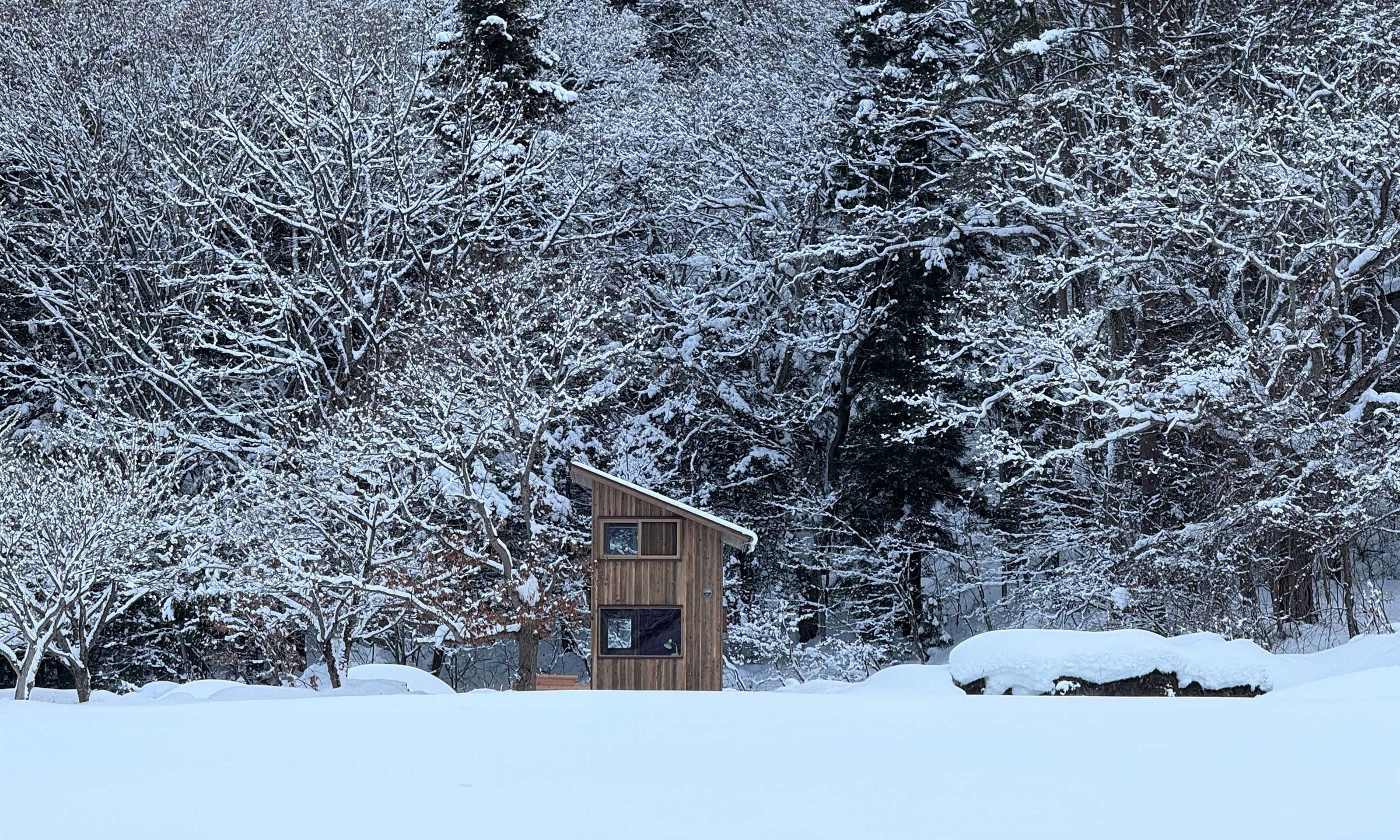 少し遅い春には一斉に緑が芽吹き庭の桜は満開に。蛍飛び交う涼しい夏はどこまでも蒼い空に、夜には満天の星空。秋は彩、森の木々たちが美しい色の連なりを魅せ田んぼは黄金色に。しんとした空気に包まれる冬は白の世界、今日もキツネが森から顔を出す。